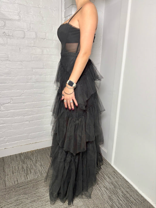 UnavailableWomen Size 10 BCBG Black Tulle Tiered NWT Gown