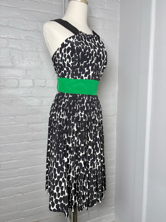 Women Size 38 (2 US) Gucci Black, Green, White Geometric Dot Pure Silk Dress
