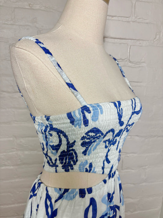 Women Size XS Caroline Constas for Intermix Blue Floral Cotton Mini Dress