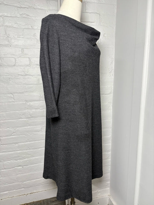 Women Size S Eileen Fisher Charcoal Solid Wool Dress