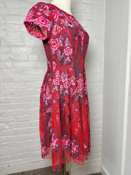 Women Size 0 Eva Franco Red, Blue Floral Polyester Dress