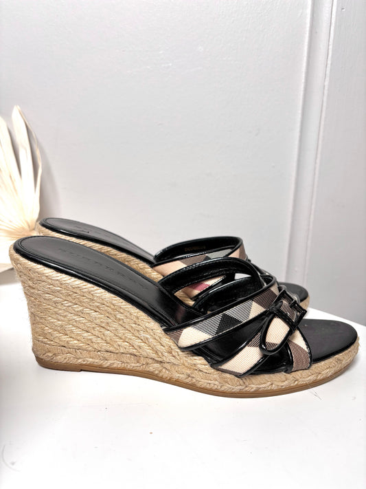 W Shoe Size 39 (8.5 US) Burberry Black Nova Check Canvas Jute Wedge