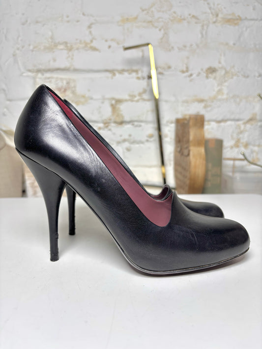 W Shoe Size 37.5 Miu Miu Black Leather Genuine Leather Heels