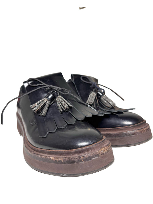 W Shoe Size 37 (6.5) Brunello Cucinelli Black Leather Cowhide Loafers