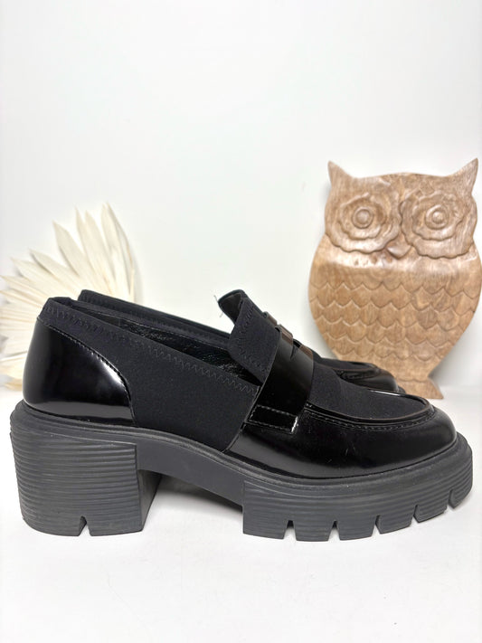 W Shoe Size 10B Stuart Weitzman Black Leather Patent, Suede Soho Loafers