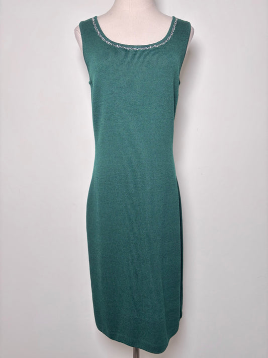 Women Size 4 St. John Evening Green Solid Wool, Rayon Dress