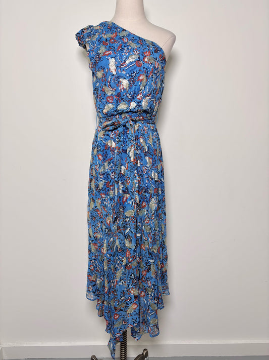 Women Size M Karina Grimaldi Blue, gold, orange Metallic Viscose Dress