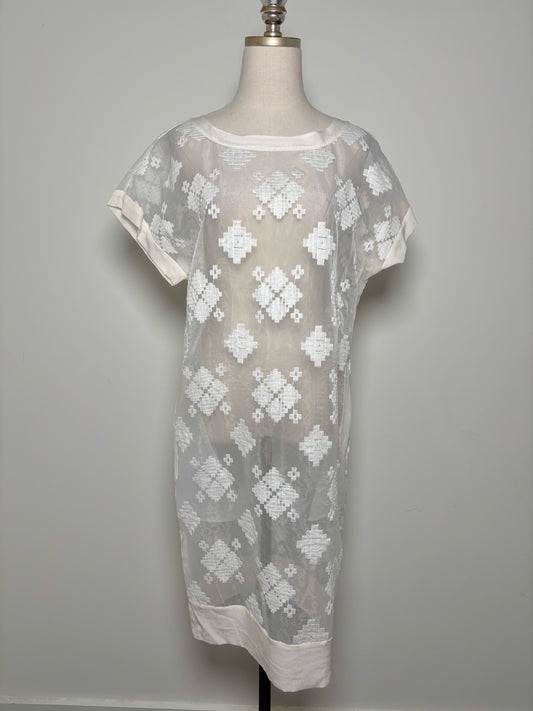 Women Size 32 (XL) Malene Birger White Embroidered Sheer Shift Dress