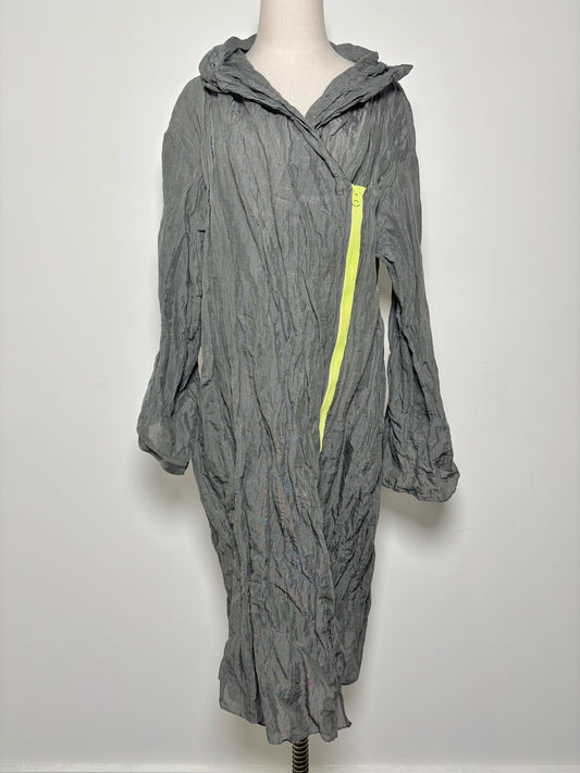 Women Size 38 (2 US) Krizia Gray Solid Cotton Blend Crinkle Long Jacket