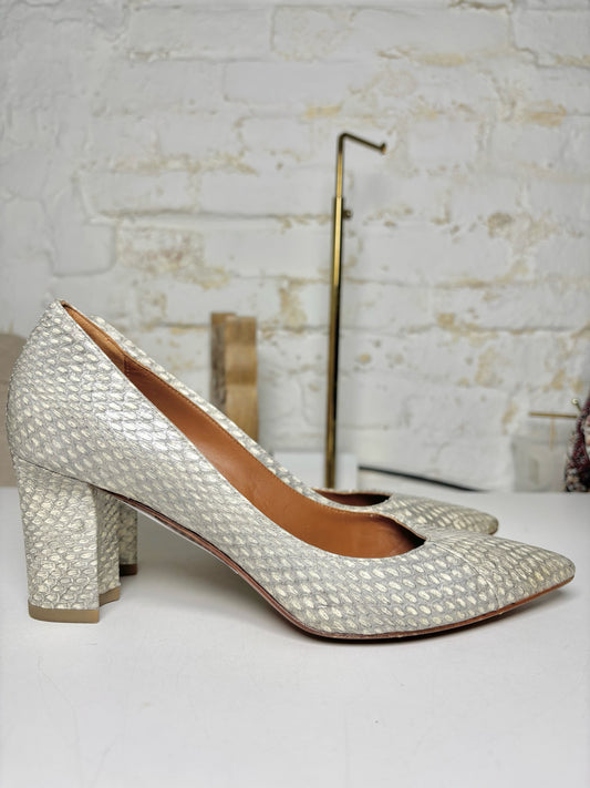 W Shoe Size 8.5 Aquaitalia Silver Leather Cowhide Pre-owned Heels