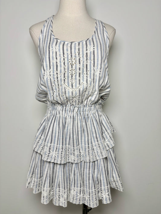 Women Size M LoveShackFancy Blue, white, gray Stripe Cotton Dress