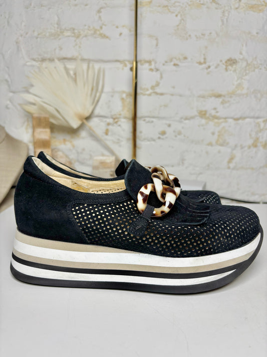 W Shoe Size 36.5 Softwaves Black Leather Pre-owned Sneakers