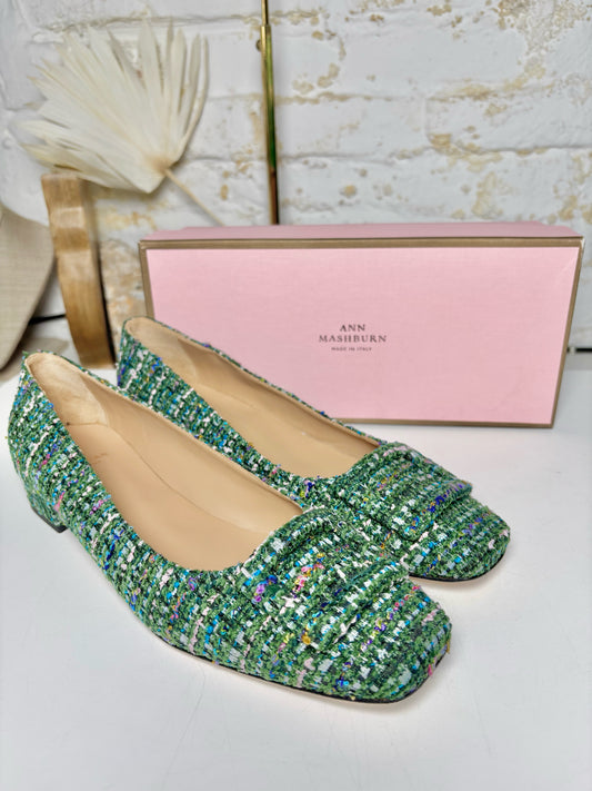 W Shoe Size 41 Ann Mashburn Green Tweed NWT Heels