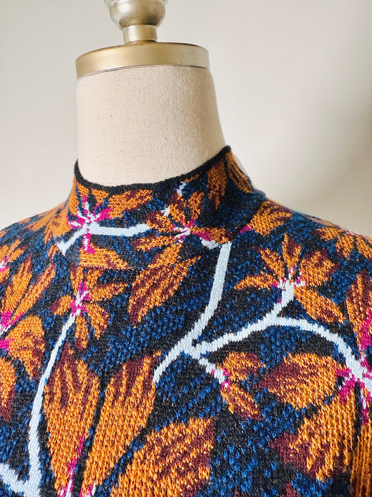Women Size L Ulla Johnson Navy, Blue, Orange Floral SS Sweater