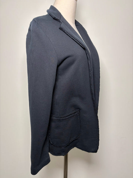Women Size XS Frank & Eileen Black Cotton Swings Open Raw Trim Jacket