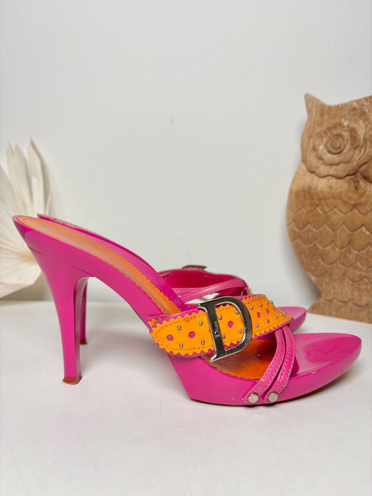 W Shoe Size 10 Christian Dior Orange, Pink Platform Resin Barbie Heels
