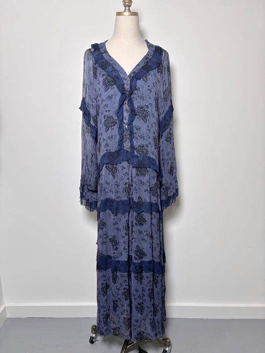 Women Size L Sundance Blue, Black Floral Print Cupro Dress