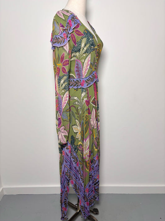 Women Size L Farm Rio Moss Green Print Viscose Dress