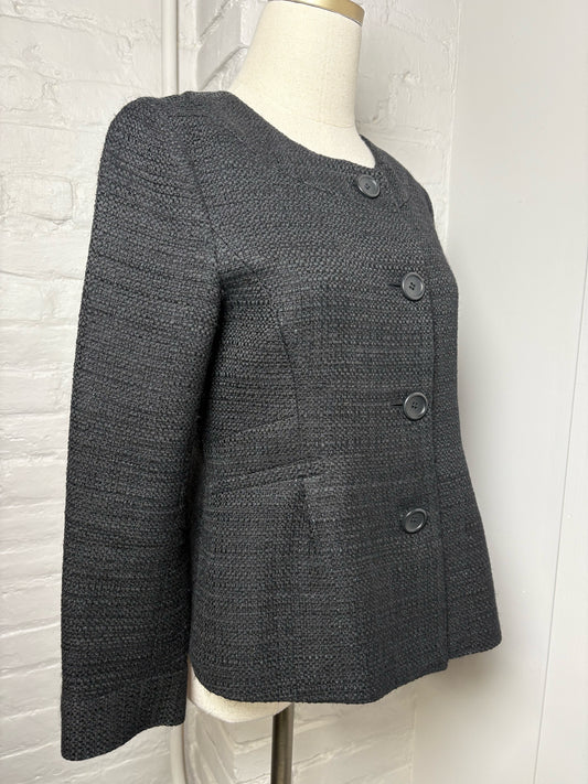 Women Size 8 Theory Black Tweed Cotton Jacket