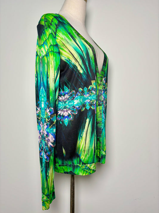 Women Size 46 (10, US) Roberto Cavalli Green, Black, Purple Jewels Print Sweater