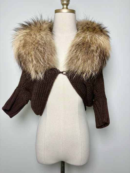 Women Size XS Alice + Olivia Brown Knitted Wool & Fur Sweater