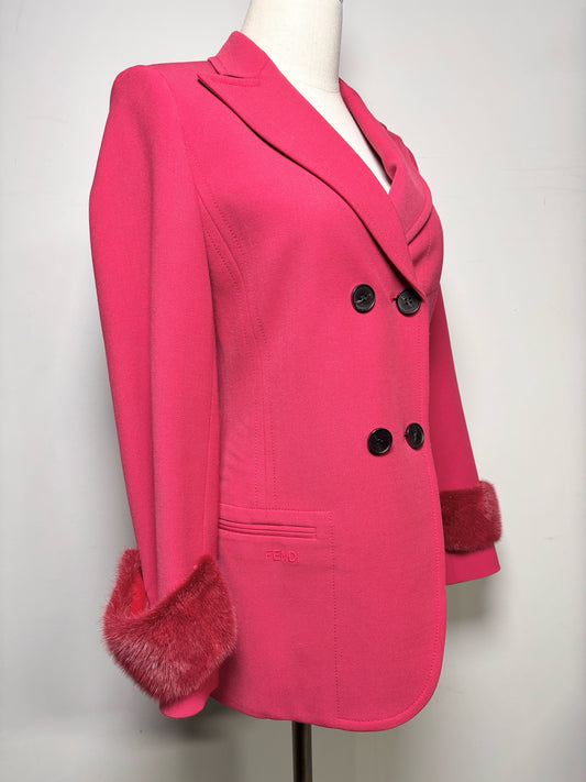 Women Size 40 (4, US) Fendi Pink Solid, Fur Trim Sweater