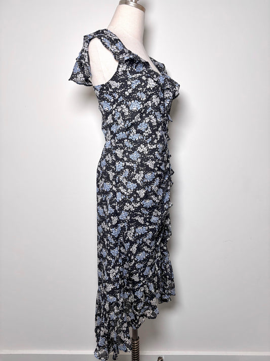 Women Size 2 Veronica Beard Blue, Black, White Floral Silk Dress