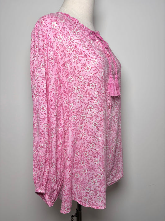 Women Size XS India Collection Emerson Fry Pink, White Floral Cotton Blouse