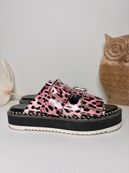 W Shoe Size 36 (5.5/6 US) AGL Pink, Black Leopard Spots Slides Sandals