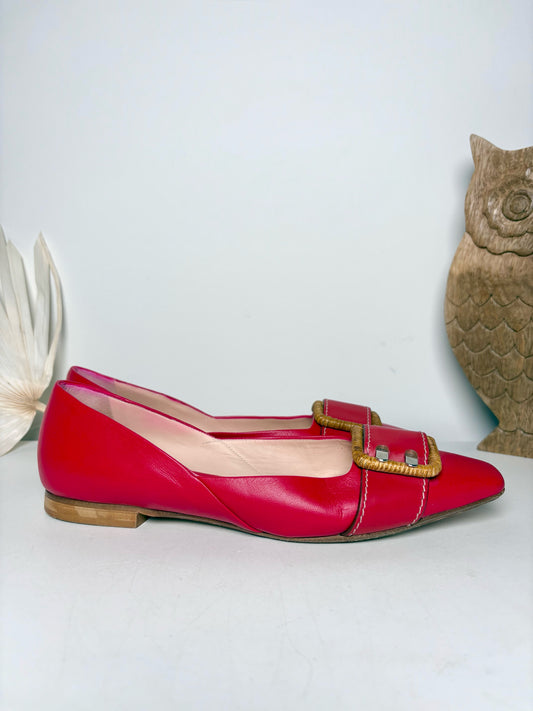 W Shoe Size 36 (5.5/6 US) Rodo Red Leather Cowhide Flats