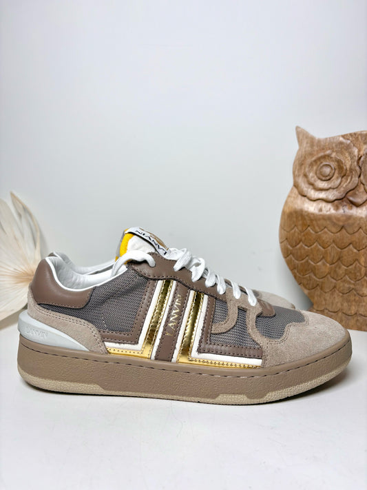 W Shoe Size 39 (8.5 US) Lanvin Dark Gray, Gold Suede Sneakers