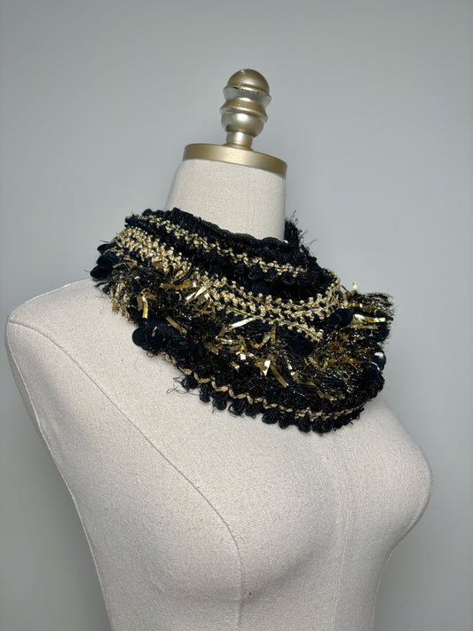 Migonne Gavigan Silk, Sequins, Fringe Scarf Necklace