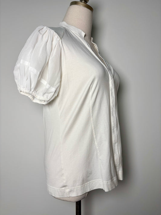 Women Size 8 Akris Punto White Solid Cotton Blouse