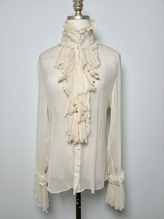 Women Size 12 Ralph Lauren Black Label Cream Solid crepe silk Blouse