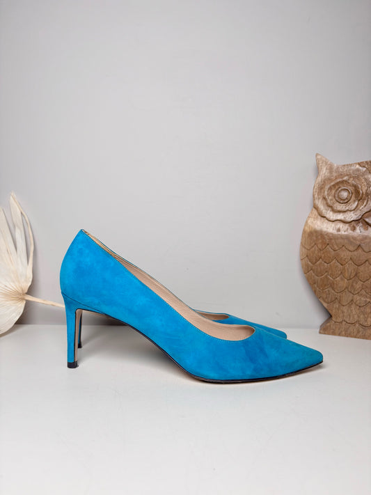 W Shoe Size 8 Stuart Weitzman Turquoise Leather Suede Heels