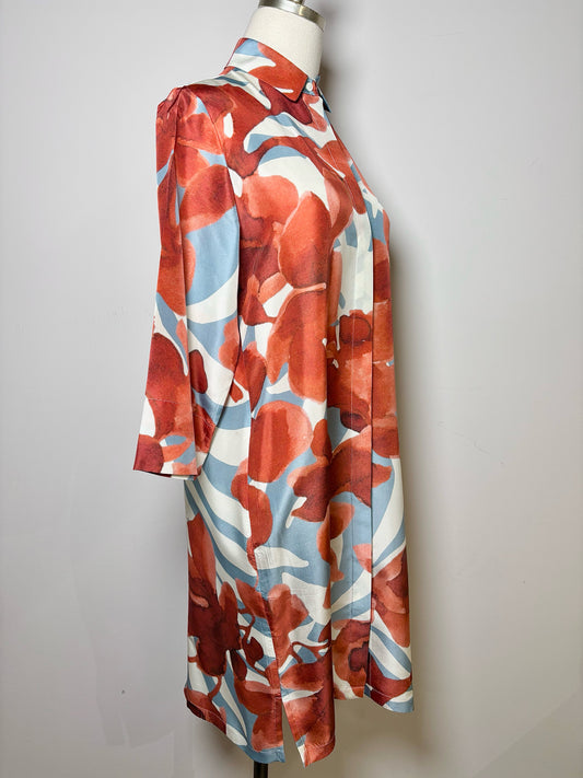 Women Size 44 (L) Rosso35 Rust, Teal, Cream Abstract Print Shirt Dress