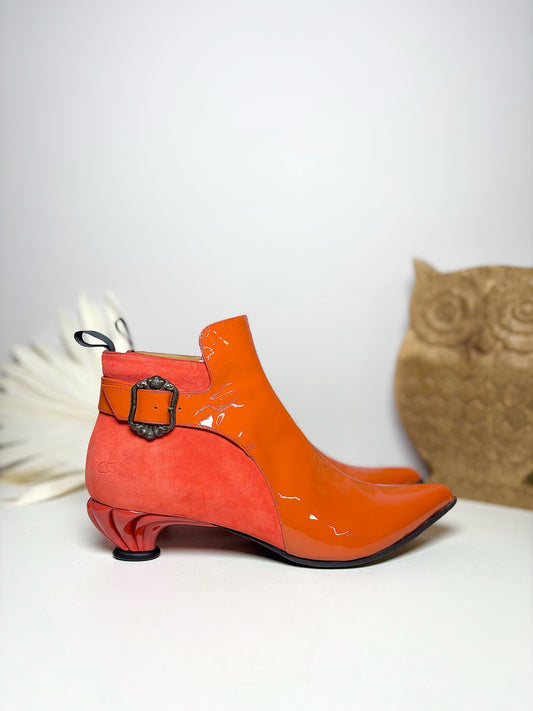 W Shoe Size 9 John Fluevog Orange PVC Lucidota Ankle Boots