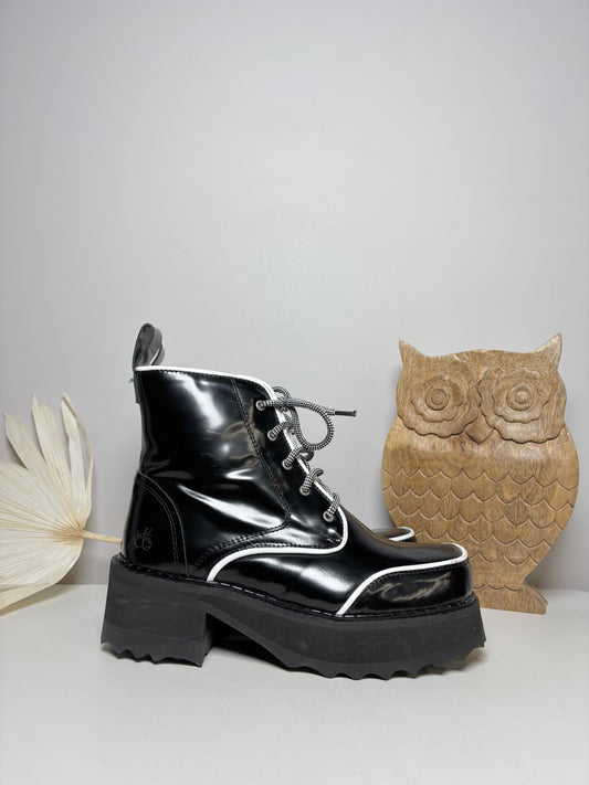 W Shoe Size 7.5 John Fluevog Black Leather Cowhide Revna Boots