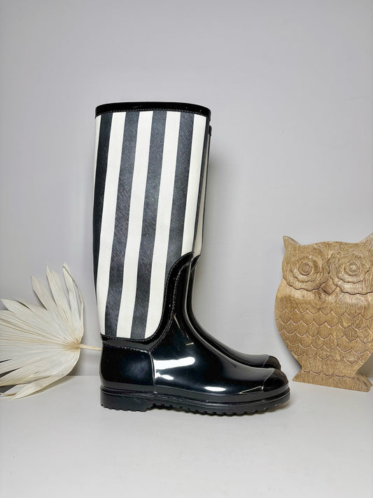 W Shoe Size 9.5 D&G Black, White Striped Rain Rubber Boots