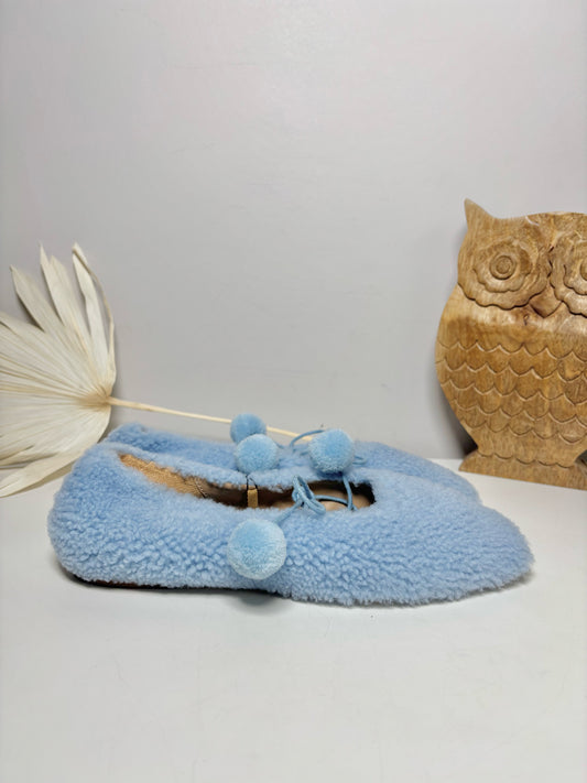 W Shoe Size 39 (8.5 US) Sleeping on Snow Powder Blue Shearling NWT Slippers