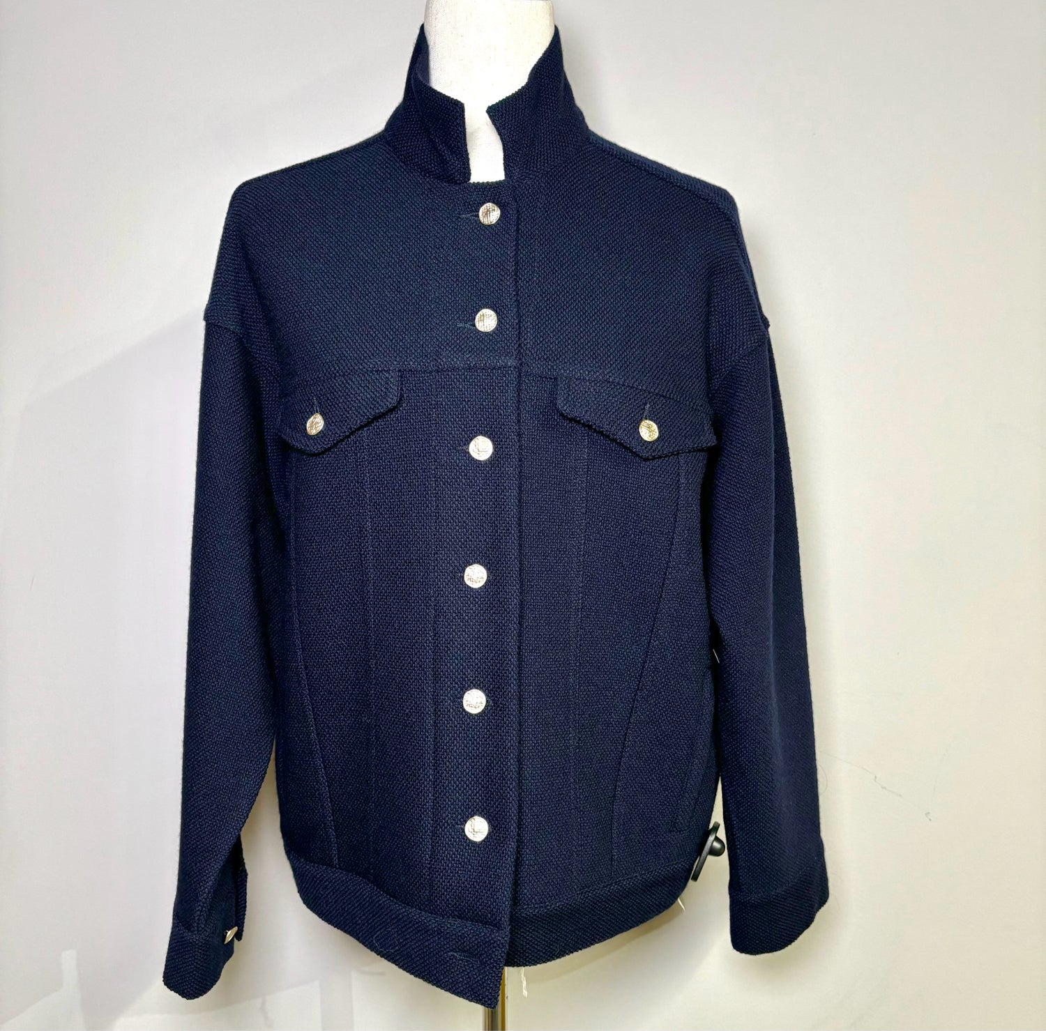 Women Size 42 Bruno Manetti Blue Solid Wool Cropped Blazer