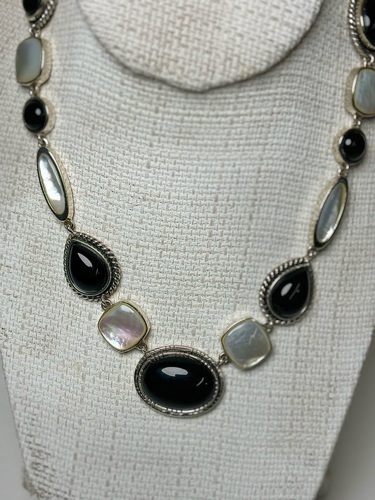 Onyx, Mother of Pearl Sterling Silver Necklace