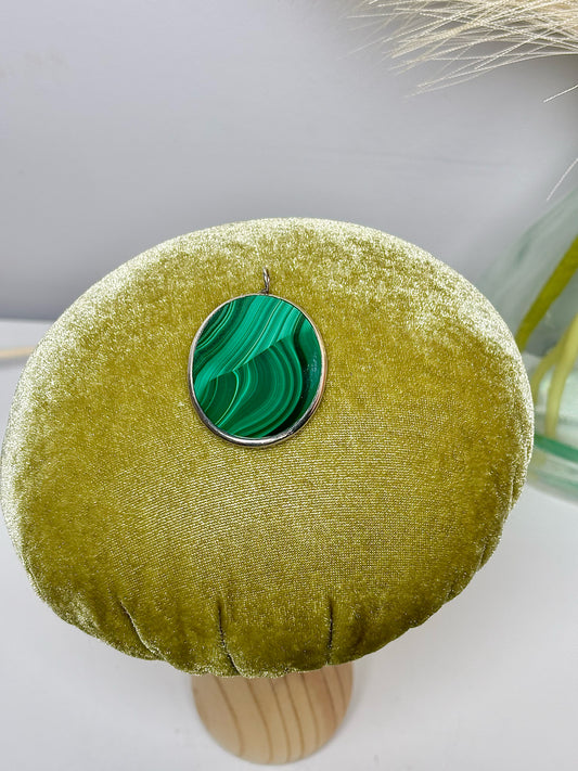Green Malachite Sterling Silver Setting Flat Pendant