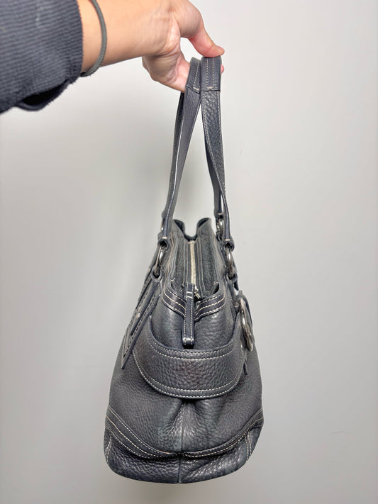 Coach Solid Leather Black Cowhide Hampton City 02764 Satchel Tote Purse