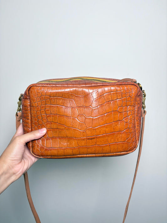 Leather Clare V. Croc Embossed Leather Pre-owned Cognac Small Purse