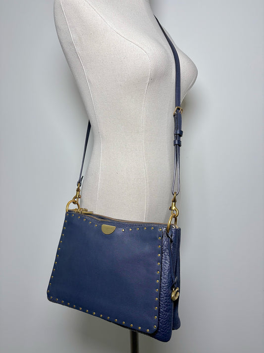 Coach Solid Leather Pre-owned Navy Cowhide Crossbody Purse