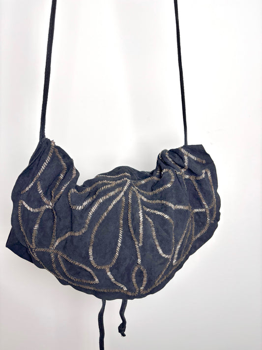 Leather Antik Batik Swirl Suede Used Black Small Purse