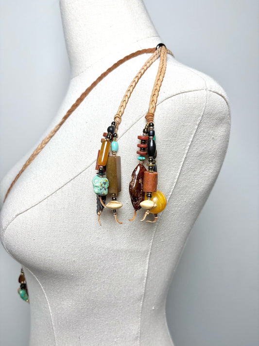 No Label Native American Leather, Camel Fringe, Turquoise, Jasper Purse