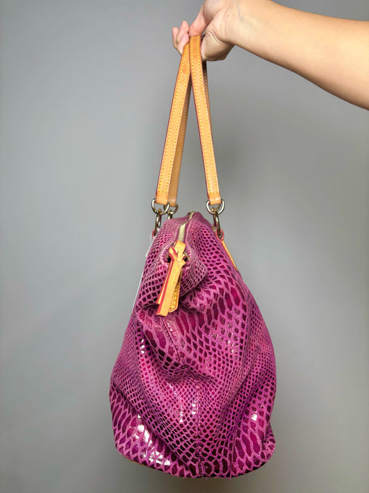 Magenta Dooney & Bourke Suede Print Leather Tote Bag