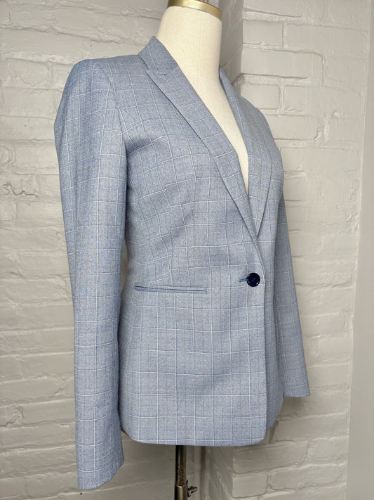 Women Size 4 Reiss Sky Blue Checkered Tailored Blazer